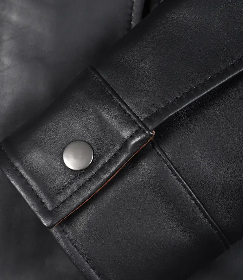 Affirmez votre style avec cette élégante veste en cuir noir, dotée d'un large revers audacieux et d'une double fermeture sur le devant. La fermeture éclair et les boutons-pression lui confèrent une touche d'originalité, tandis que sa coupe subtile met en valeur votre silhouette. Idéale pour la mi-saison et au quotidien.
